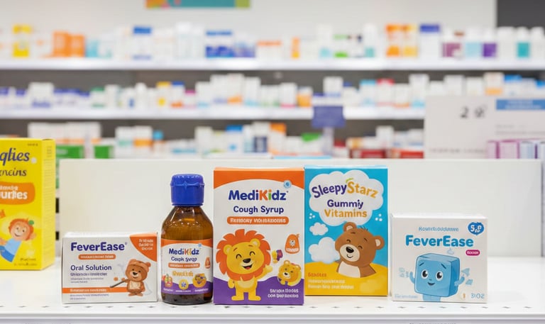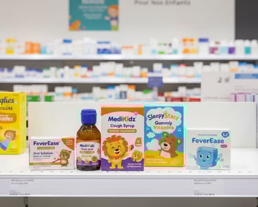 Sirops pour enfants et compléments adaptés aux besoins pédiatriques.